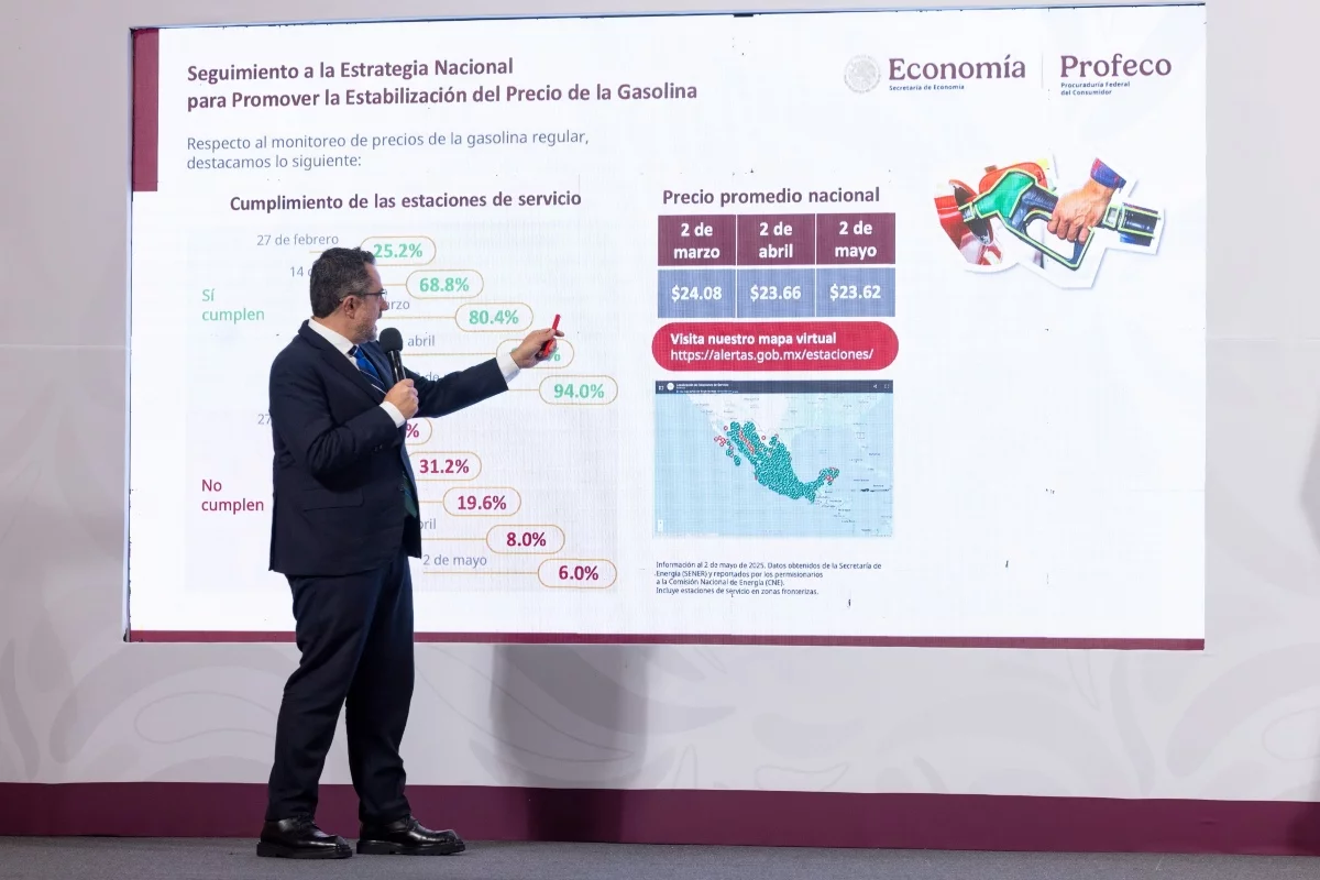 Al 2 de mayo de 2025, la Procuraduría Federal del Consumidor (Profeco) reportó que el 94% de las estaciones de servicio en México ofrecen gasolina regular a precios menores de 24 pesos por litro, según datos del monitoreo semanal del programa "Quién es Quién en los Precios", elaborado con información de la Secretaría de Energía (SENER) y la Comisión Nacional de Energía (CNE). Este seguimiento forma parte de la Estrategia Nacional para Promover la Estabilización del Precio de la Gasolina, incluyendo zonas fronterizas.