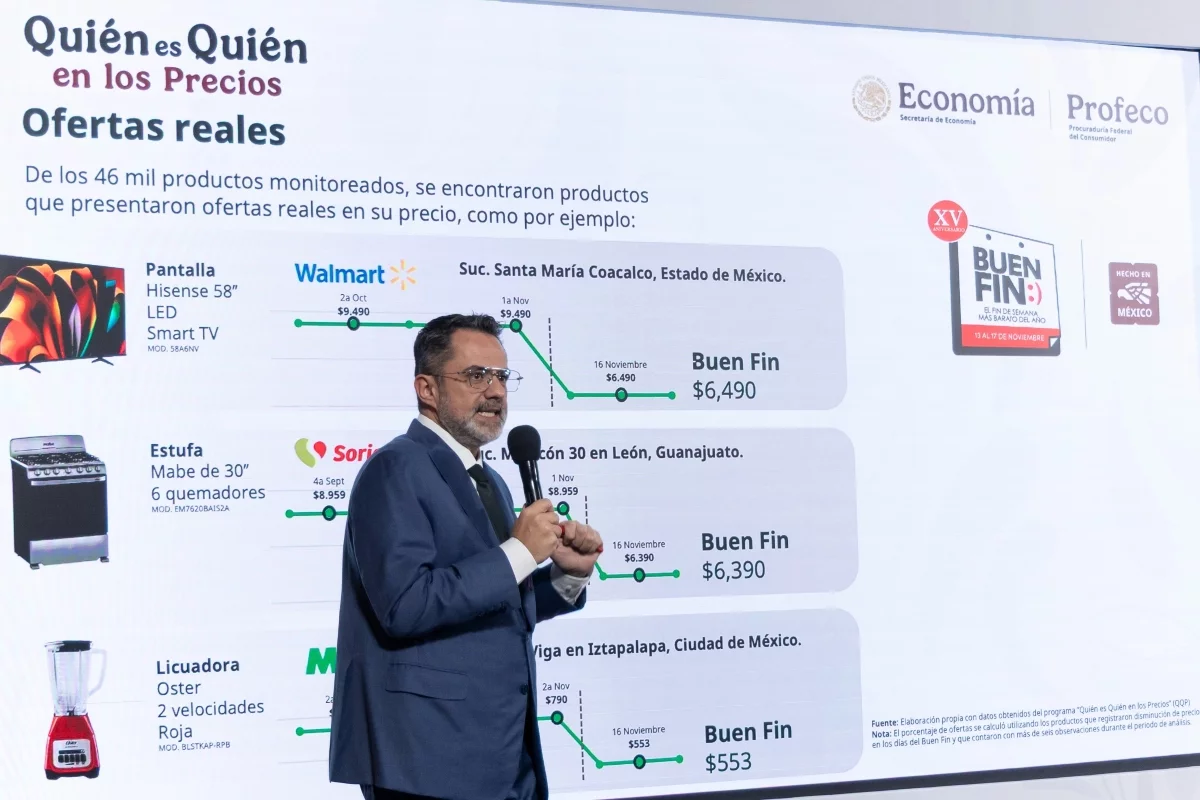 Autor: Judith Moreno - 01-12-2025 Profeco reveló simulaciones de descuentos durante el Buen Fin 2025, tras detectar precios inflados antes de las ofertas en tiendas de alcance nacional